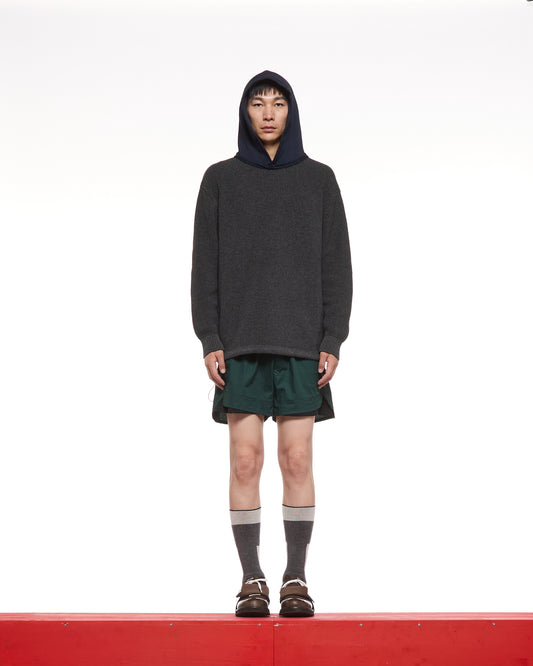 CREW NECK HOODIE KNIT - ASPHALT GREY