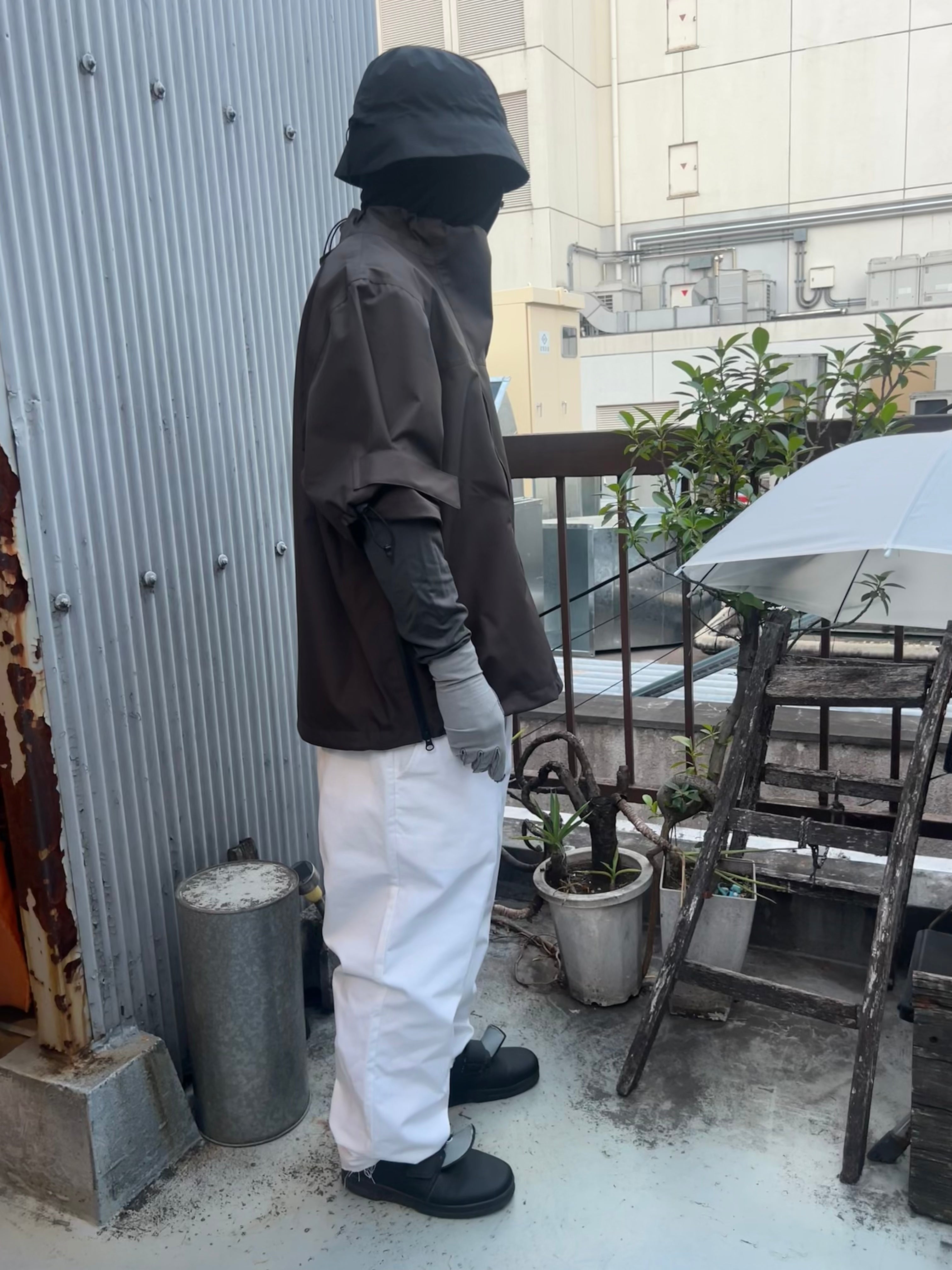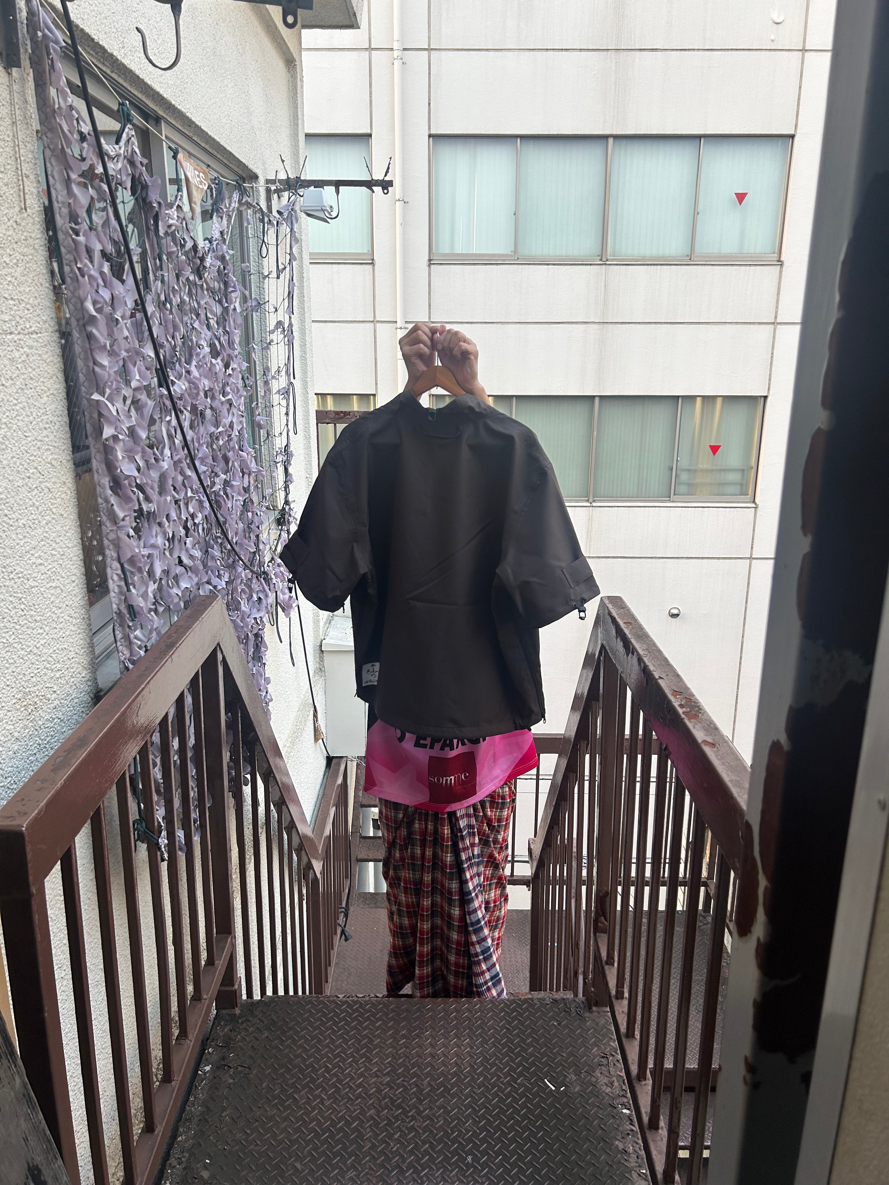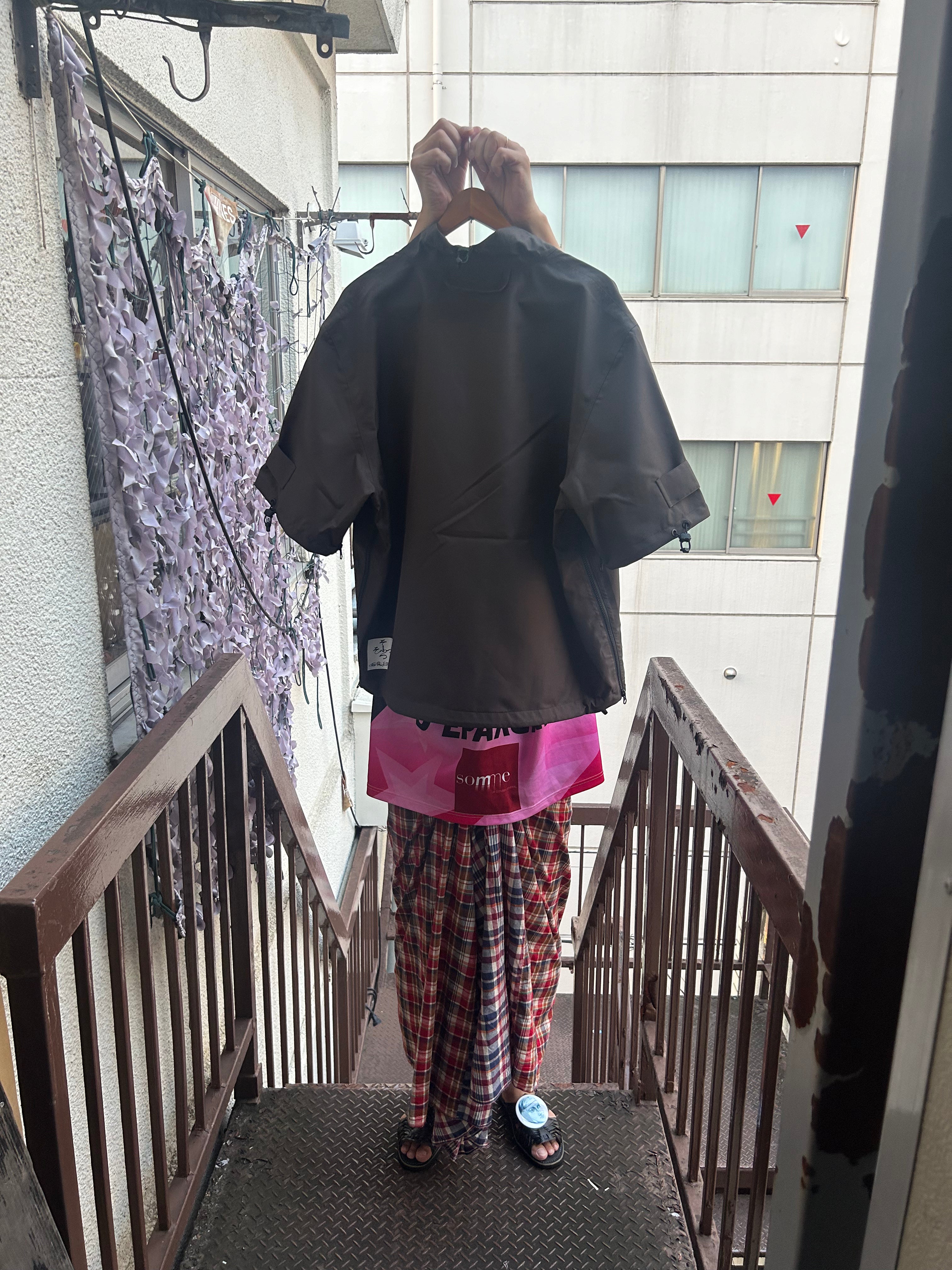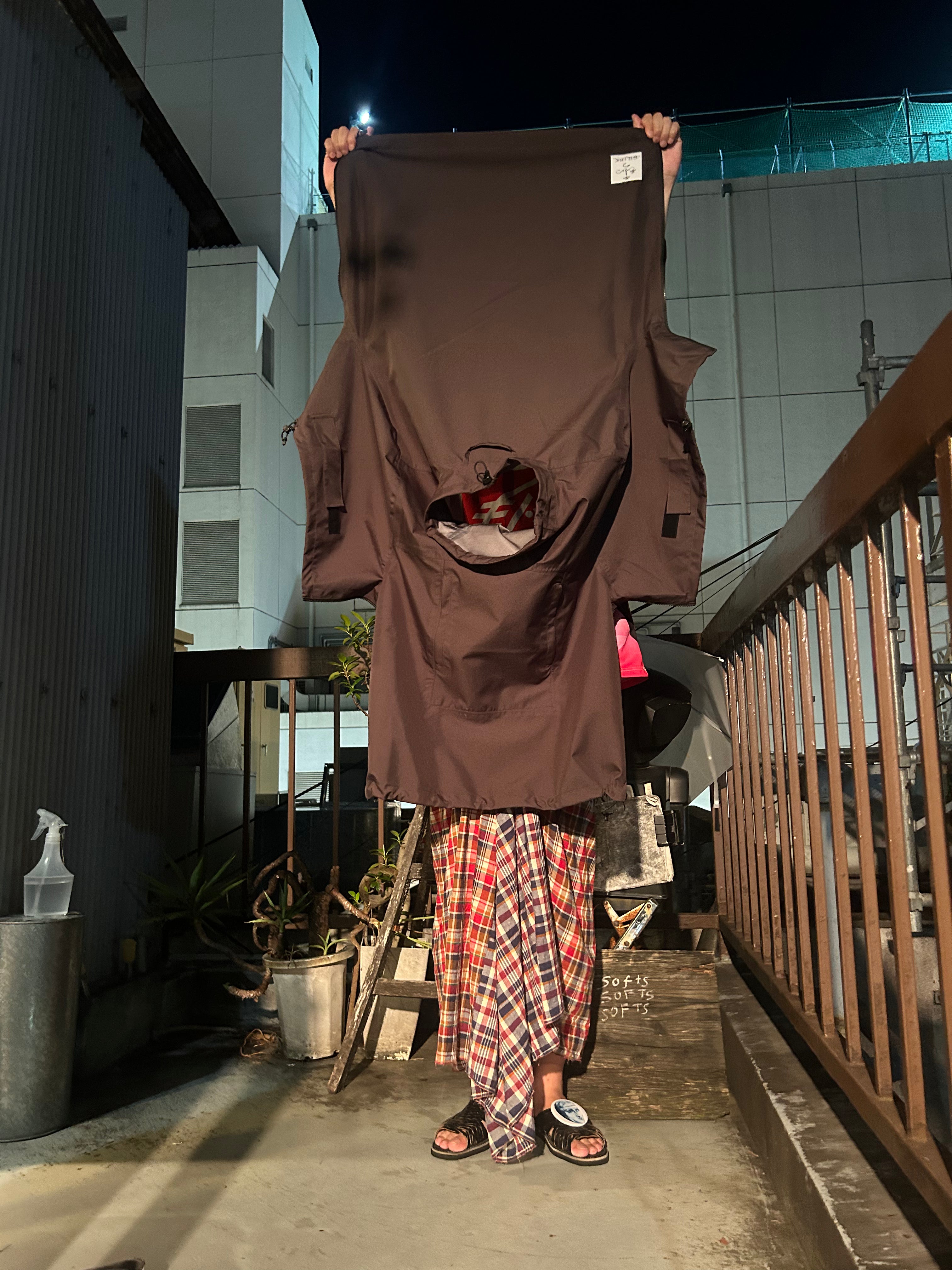 This product, designed by softs and engineered by GR10K, was conceived to address the need to adapt to Japan's increasingly subtropical environment, where tropical nights can reach 31°C (88°F) and sudden rainstorms can bring up to 100mm of rainfall in an hour. Key features include water-resistant material throughout, with short sleeves that can be opened using side zippers running from the hem to under the armpit, allowing for both protection from rain and enhanced ventilation when needed.