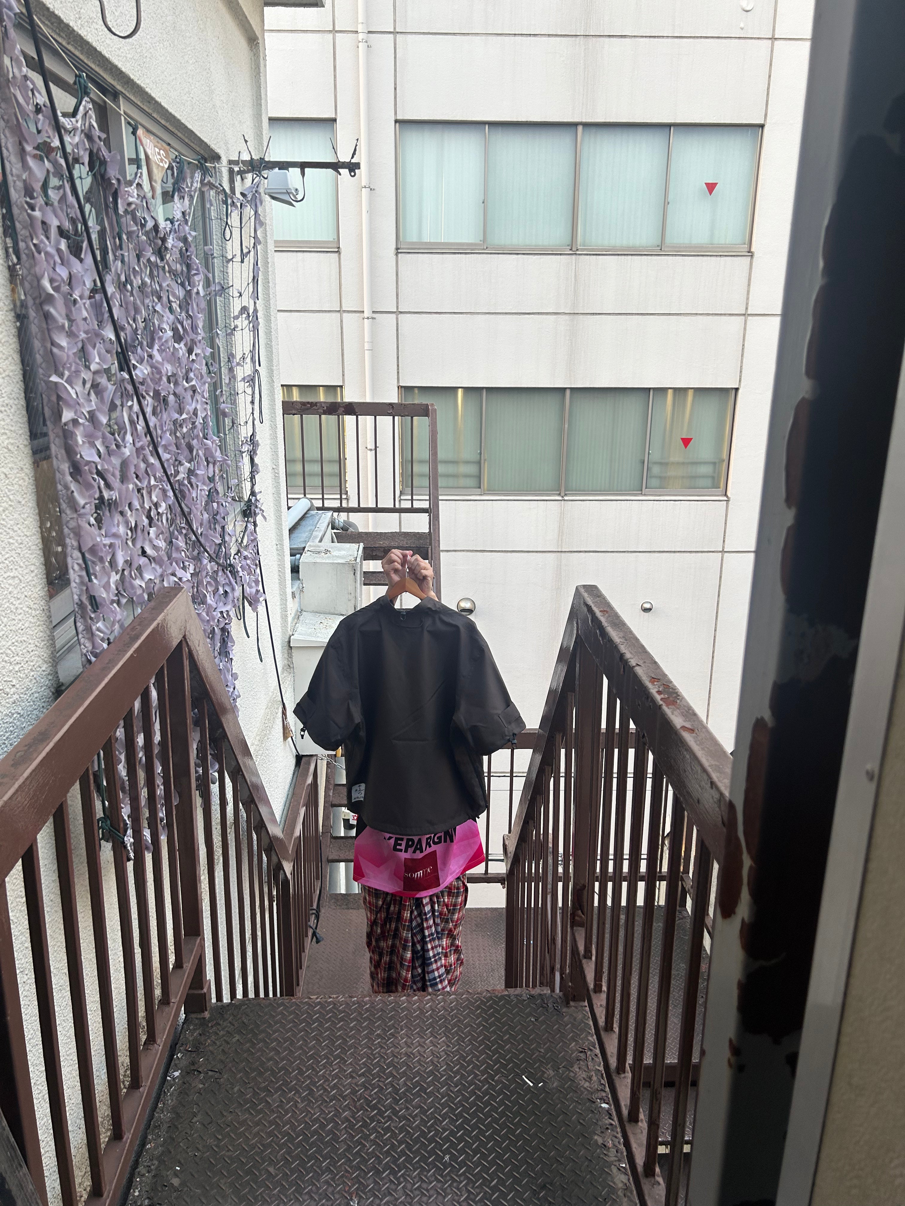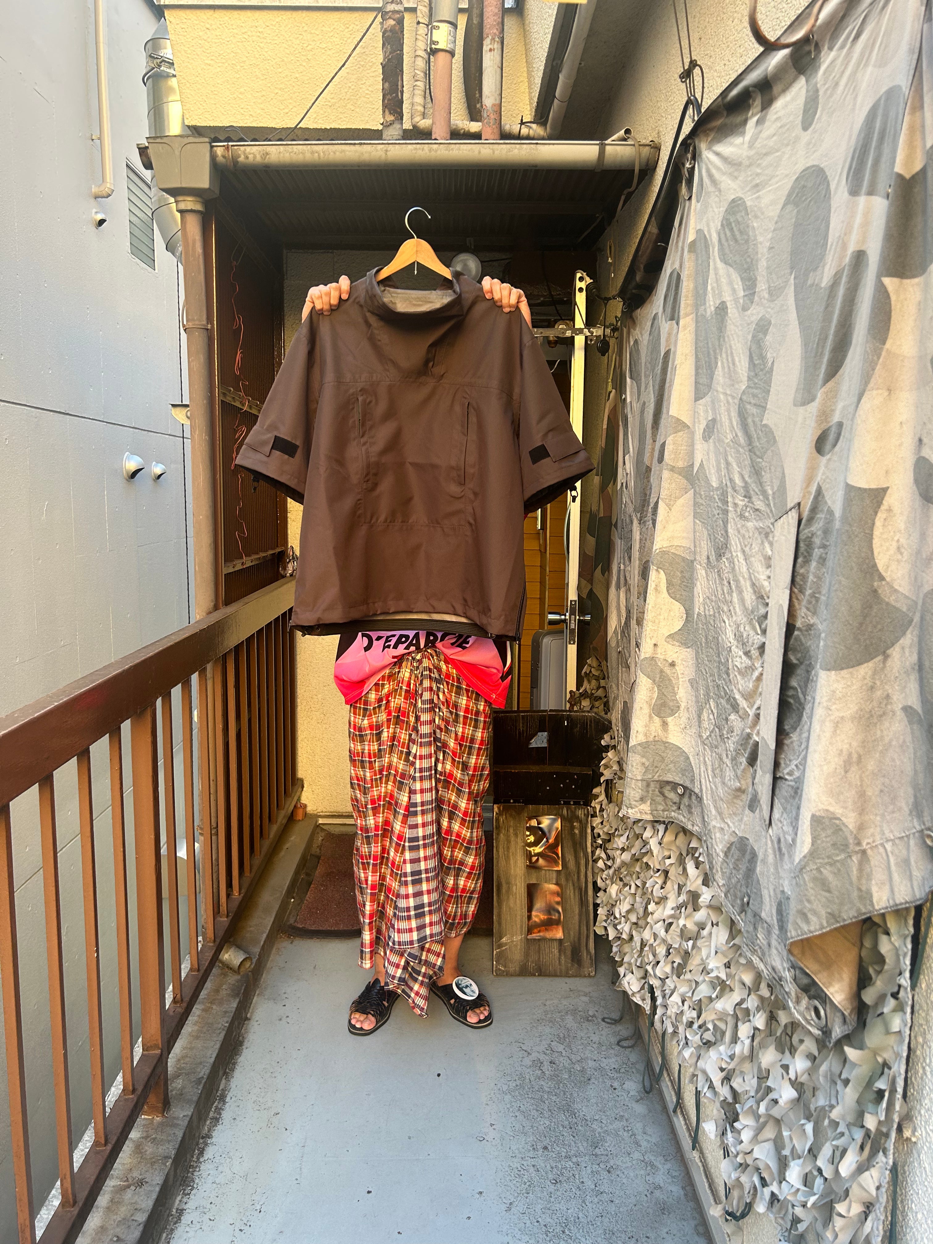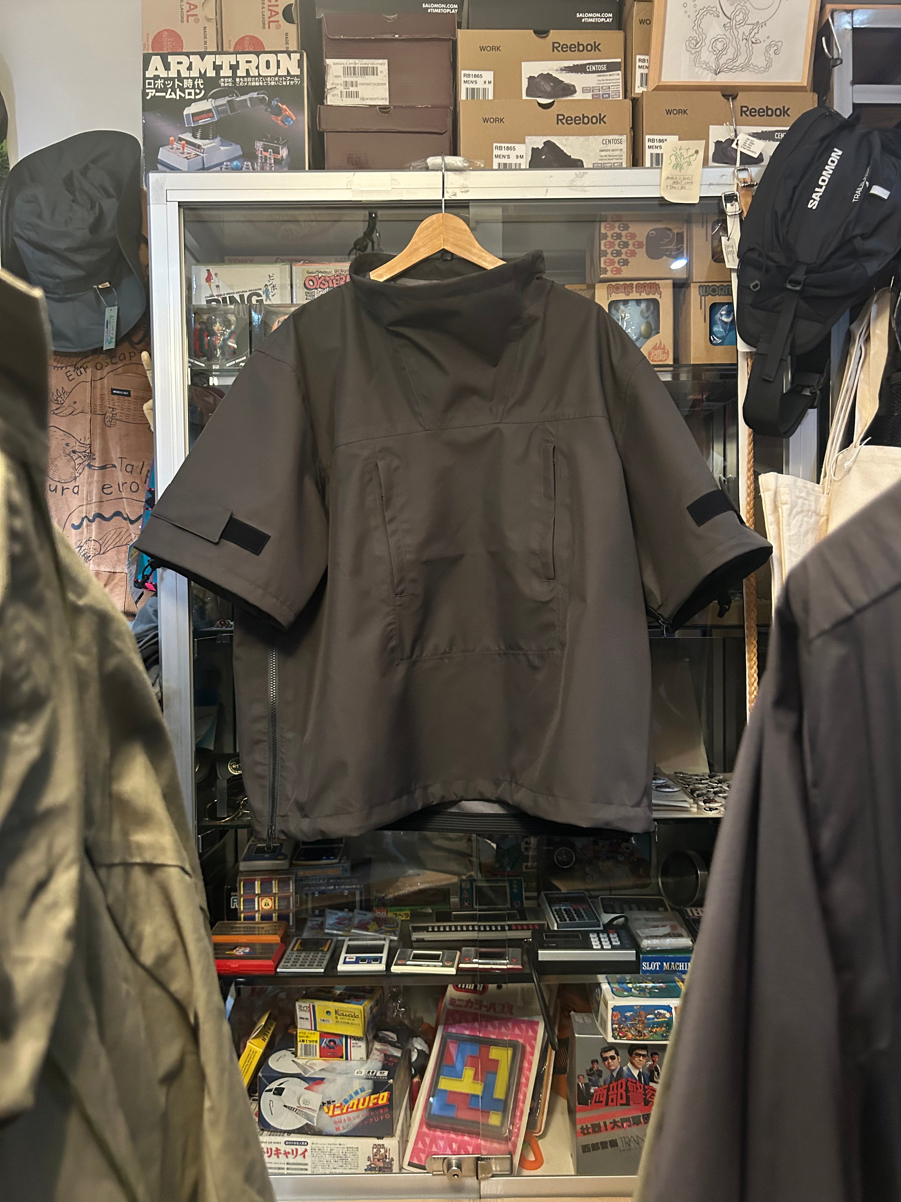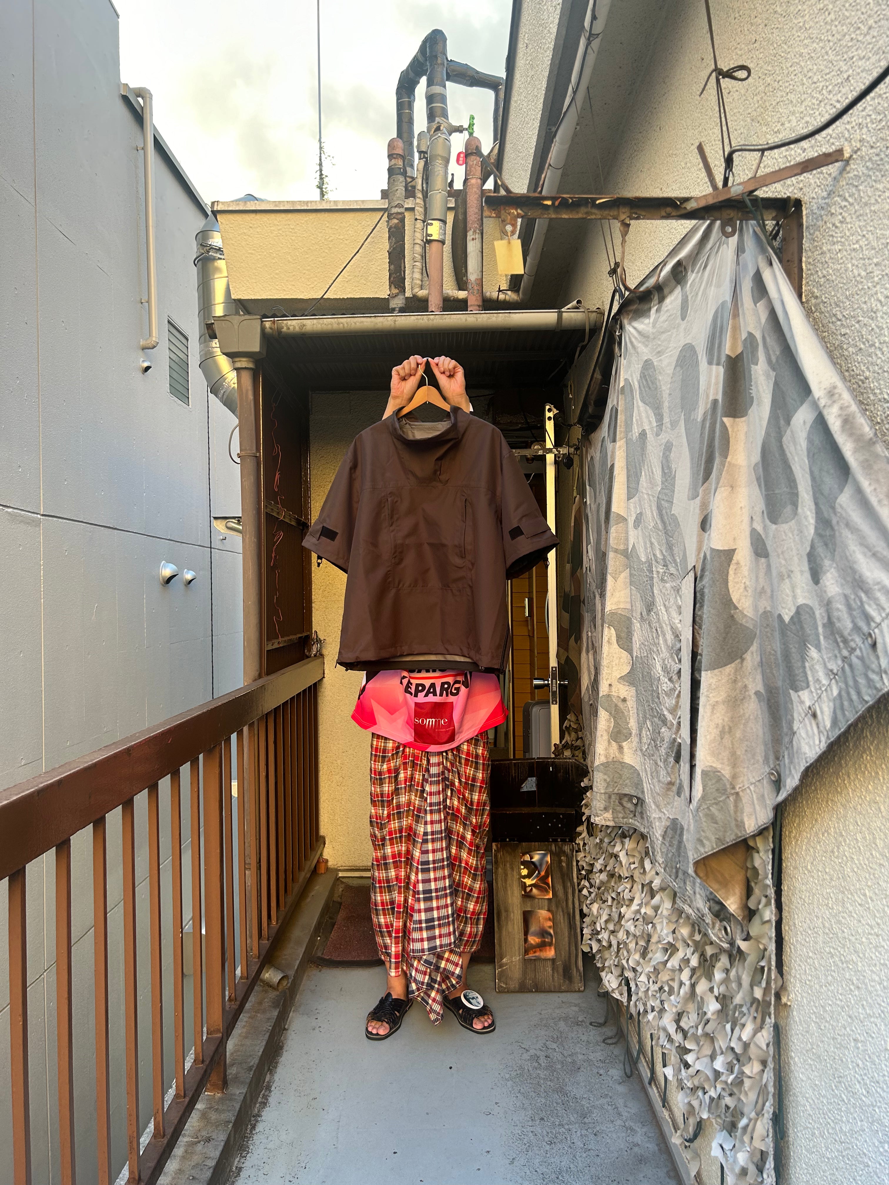 This product, designed by softs and engineered by GR10K, was conceived to address the need to adapt to Japan's increasingly subtropical environment, where tropical nights can reach 31°C (88°F) and sudden rainstorms can bring up to 100mm of rainfall in an hour. Key features include water-resistant material throughout, with short sleeves that can be opened using side zippers running from the hem to under the armpit, allowing for both protection from rain and enhanced ventilation when needed.